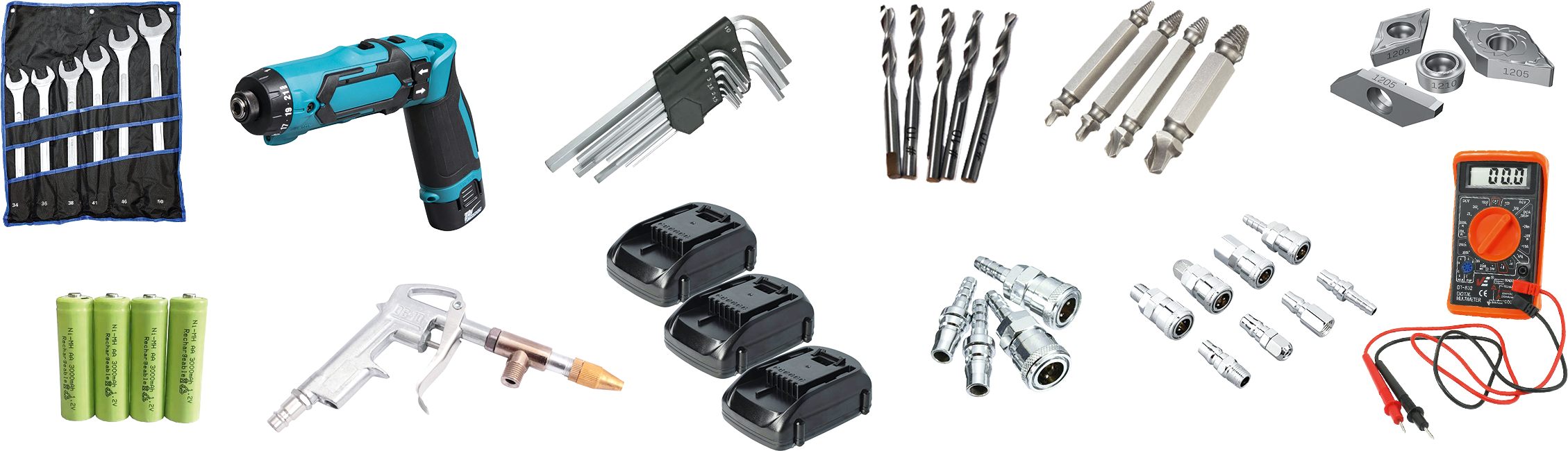 (drobne części, narzędzia, klucze, wiertła, urządzenia elektroniczne)